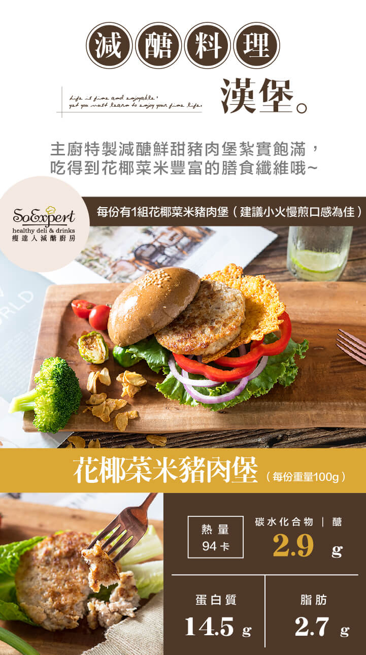 瘦達人五星主廚特製質感豬肉堡,花椰菜米肉排擁有豐富的膳食纖維,同時能吃到肉質的綿密,口感格外鮮嫩彈牙,是一道令人垂涎的吮指美味!豬肉排選用國產豬隻,內層軟嫩多汁,風味醇厚的香氣一流。